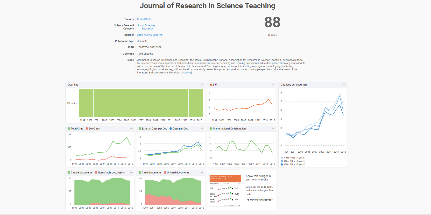 The SCImago Journal & Country Rank is a publicly available portal that includes the journals and country scientific indicators developed from the information contained in the Scopus® database (Elsevier B.V.). These indicators can be used to assess and analyze scientific domains. Journals can be compared or analysed separately. Country rankings may also be compared or analysed separately. Journals can be grouped by subject area (27 major thematic areas), subject category (313 specific subject categories) or by country. Citation data is drawn from over 21,500 titles from more than 5,000 international publishers and country performance metrics from 239 countries worldwide.